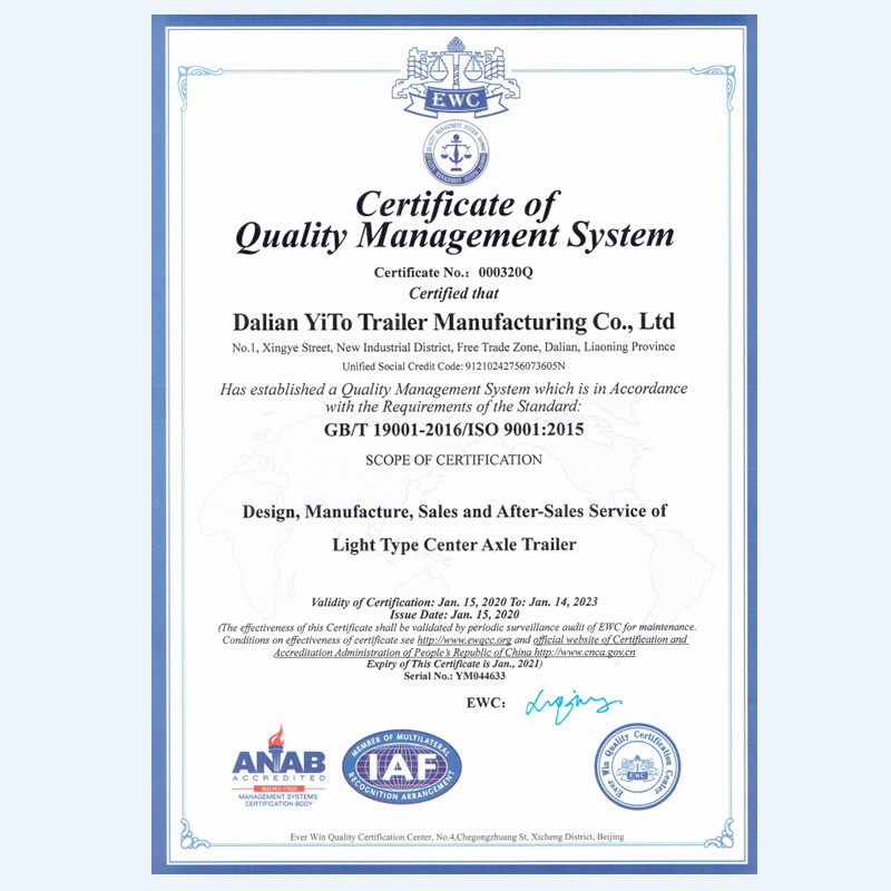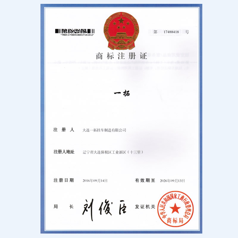 大連一拓掛車制造有限公司,地處遼寧省大連保稅區十三里工業新區興業街1號,公司占地45000m㎡,總建筑面積24000㎡,現有生產、檢測、研發設備100余臺套,擁有自動化程度很高的機器人焊接生產線。大連一拓掛車制造有限公司成立于2013年,是一家具備國家工信部專用車生產資質企業,致力于乘用車掛車的設計和生產,主要產品有:平板板式輕型中置軸掛車、欄板式輕型中置軸掛車、廂式輕型中置軸掛車、特種結構式輕型中置軸掛車,并承接各種用途輕型中置軸掛車設計等業務。公司秉承“銳意進取,開拓創新,精益求精,誠信共贏”的運營理念,竭誠為您服務。